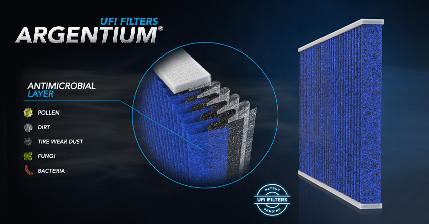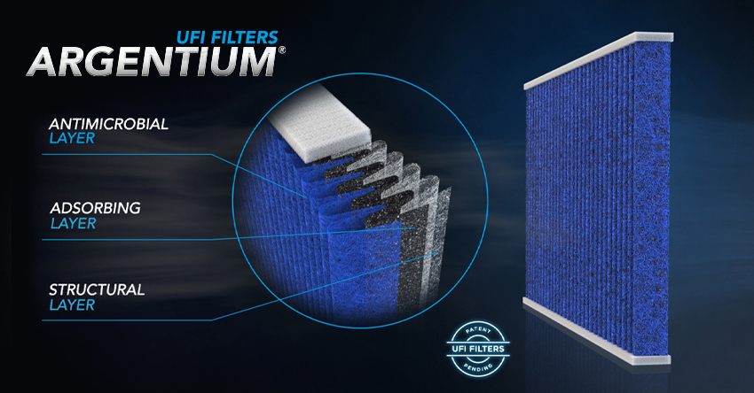 The UFI Filters ARGENTIUM range of passenger compartment filters enters the UFI Aftermarket catalogue. The revolutionary filtering media produced by UFI Group, a leader in its sector, consists of synthetic polymer fibres containing a combination of elements with a high antimicrobial function.